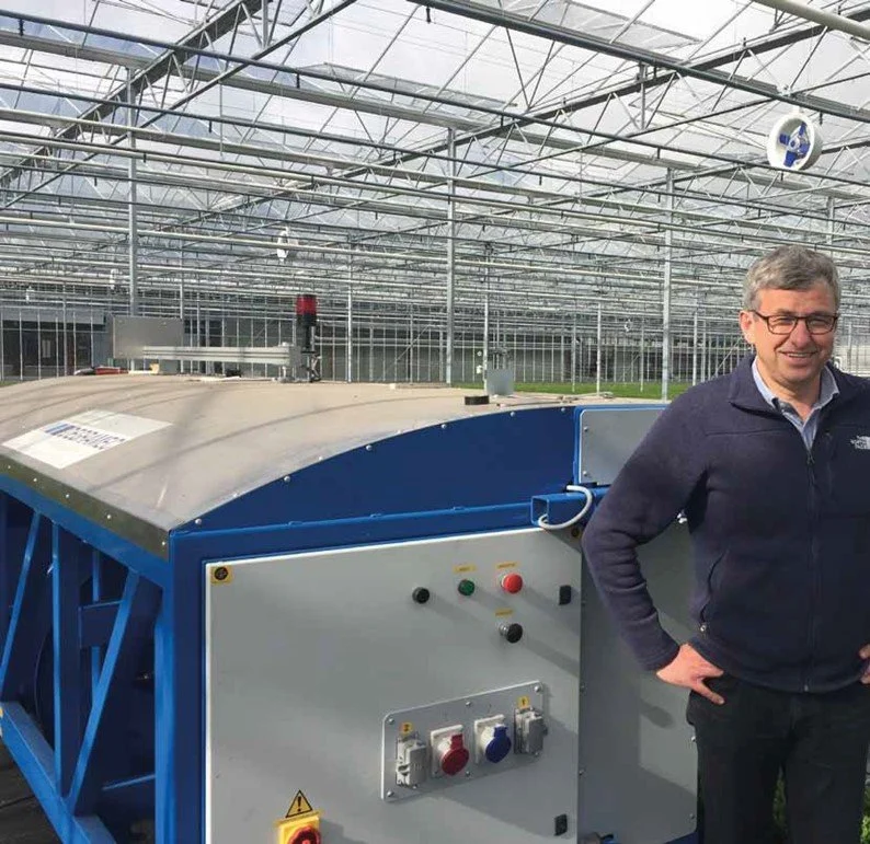 Piet Ravelingen in de Roll-air kas