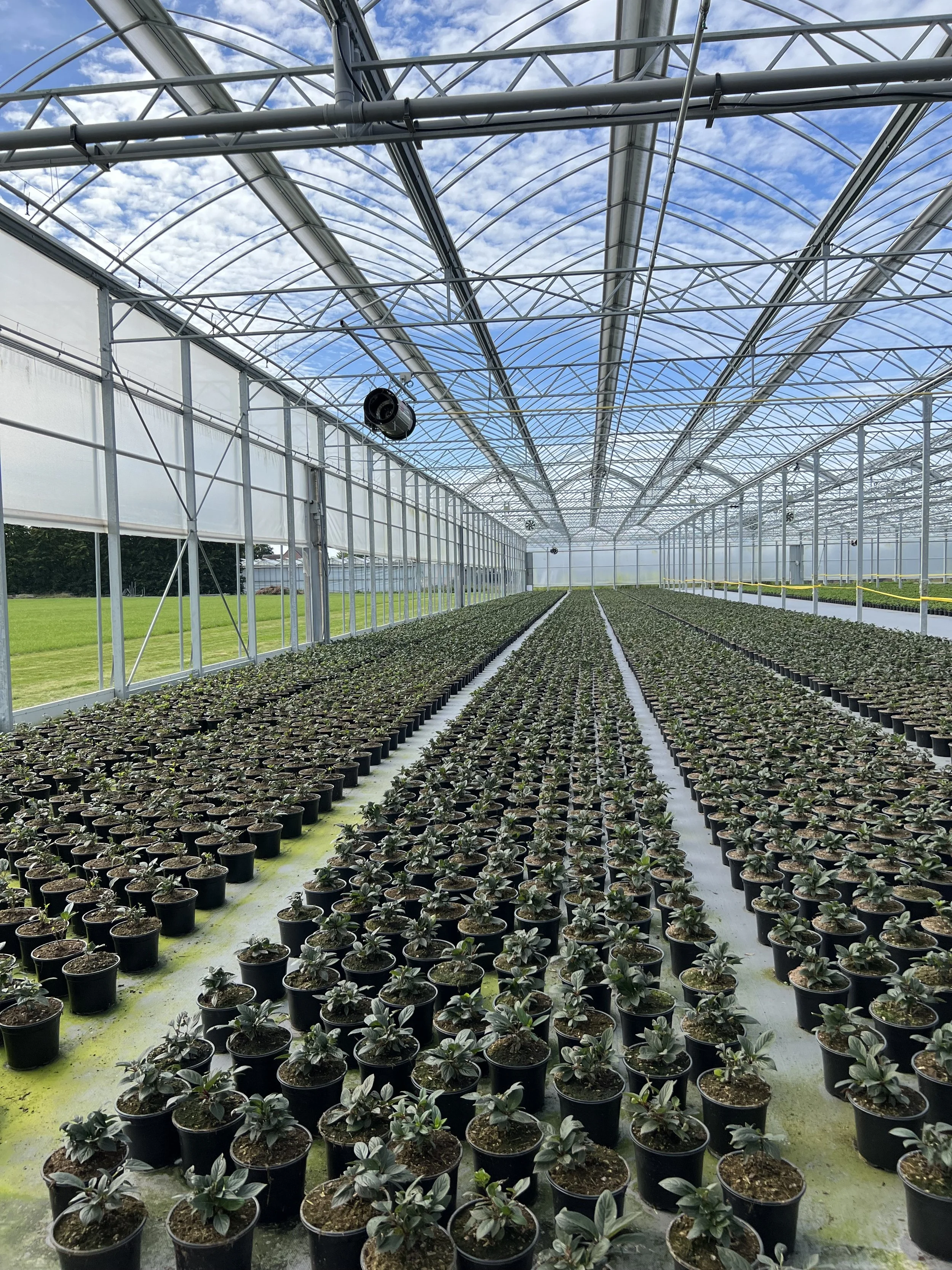 In Maldegem was alleen al dat verplaatsen van planten van binnen naar buiten arbeidsintensief voor ID’Flor. Zes mensen waren er soms anderhalve week per hectare mee bezig met de vrachtwagen. ‘We hebben voorafgaand aan het besluit om te verhuizen alle mogelijkheden in kaart gebracht’, vertelt Ravelingien, ‘maar dat heen en weer rijden is niet meer van deze tijd. Drie jaar geleden hebben we nog een extreem koude winter gehad, wat veel problemen veroorzaakte in de teelt. Het klimaatprobleem maakt dat binnen-of-buiten-vraagstuk steeds urgenter. We kwamen al snel tot de conclusie dat we een foliekas nodig hadden die open en dicht kon.’